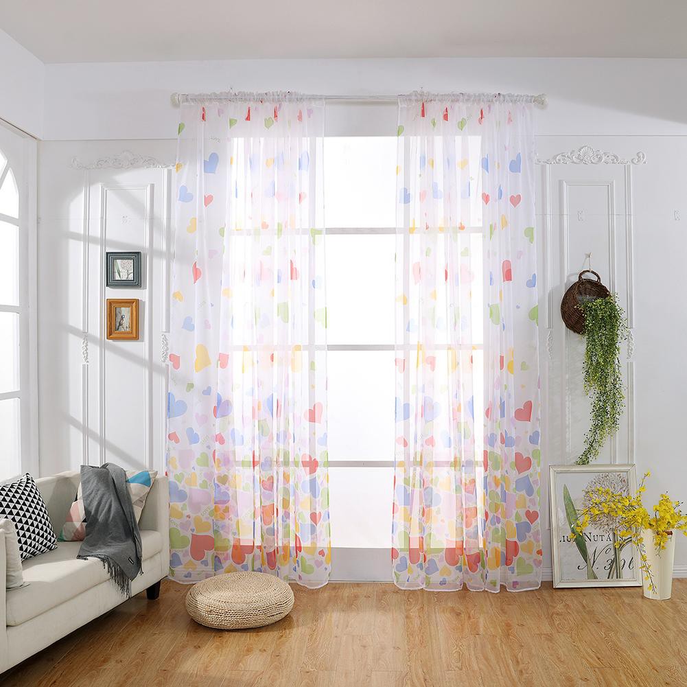 2pcs Love Heart Print Sheer Voile Tulle Drapes Living Room Windows