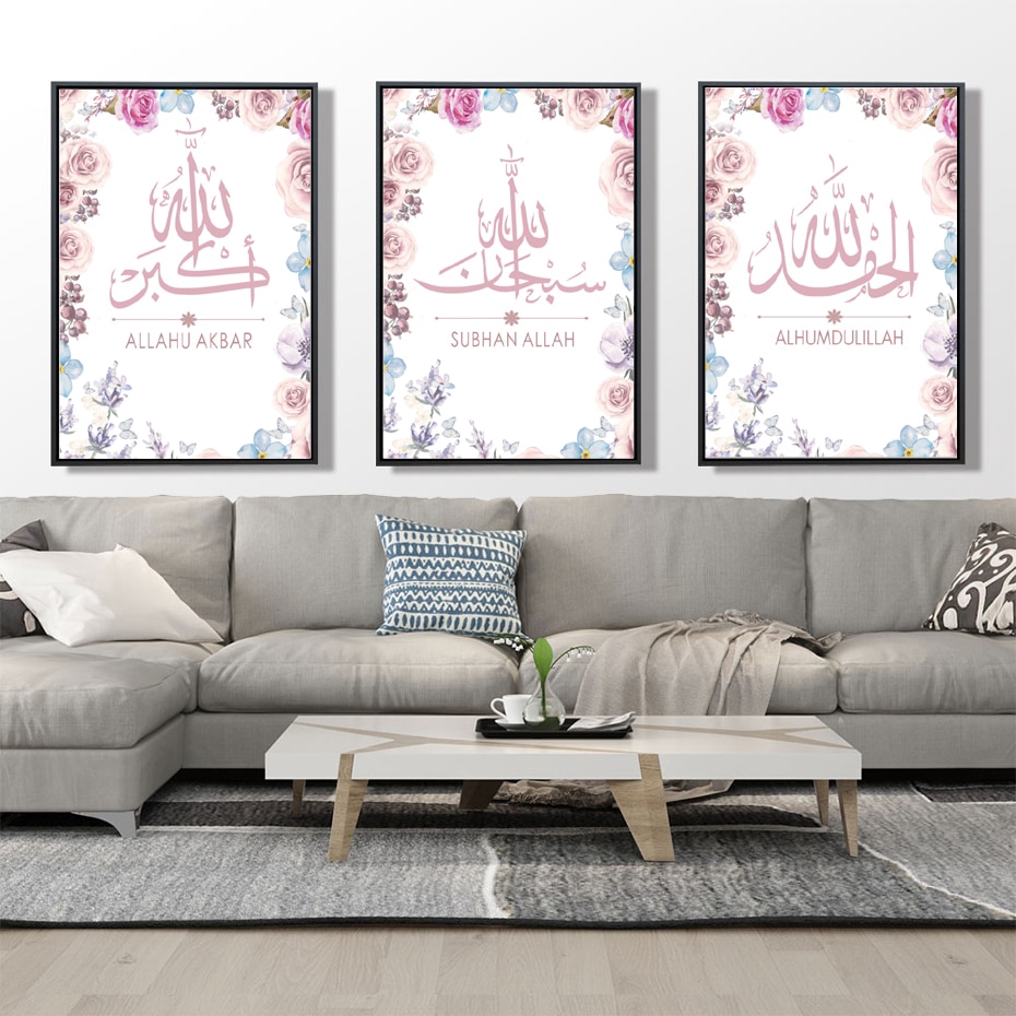 Arabic Calligraphy Islamic Prints Floral Posters Wall Art Pictures