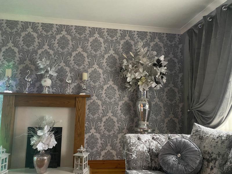 Fine Decor Verona Grey Damask Glitter Effect Textured Wallpaper