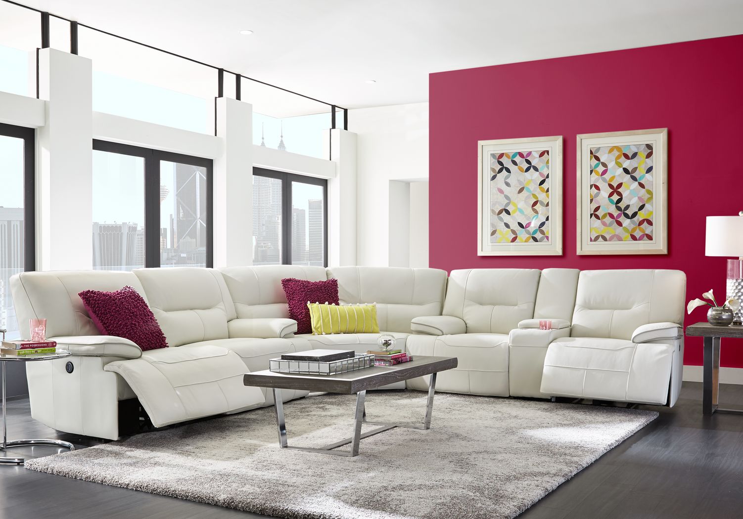 Oakley White 6 Piece Leather Sectional Kane S Furniture